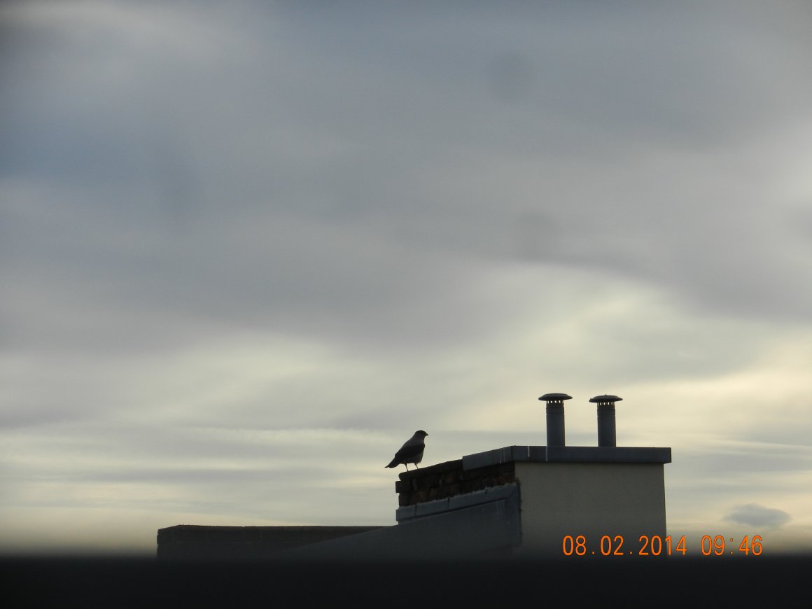 Nachmittag – die graue Jalousie war so zu, wie es nur geht … und ich hörte starken Flugbetrieb.