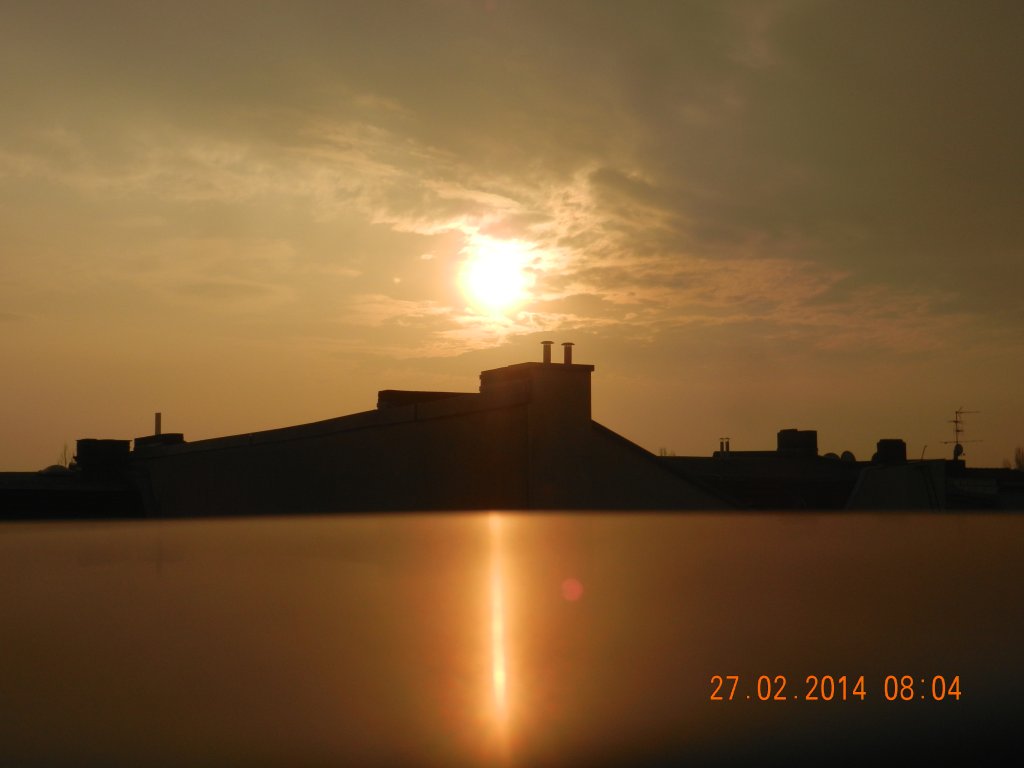 Anfangs sonnig, später aufkommende Bewölkung, ansonsten aus Kostengründen heute kein besonderes Wetter, die gleiche dicke Luft wie gestern.