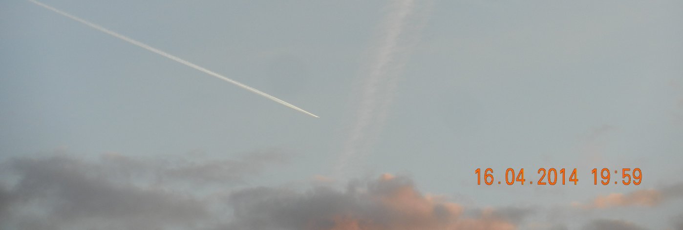 Eine Bildergeschichte ohne viele Worte – verkehrte Wolken, die Schönheit der von Gott geschaffenen Pflanzen und Bäume, die Häßlichkeit der todbringenden Zellfunkmasten, Todesstreifen am Himmel und ein Sonnenuntergang mit viel Schmutz in der Luft.