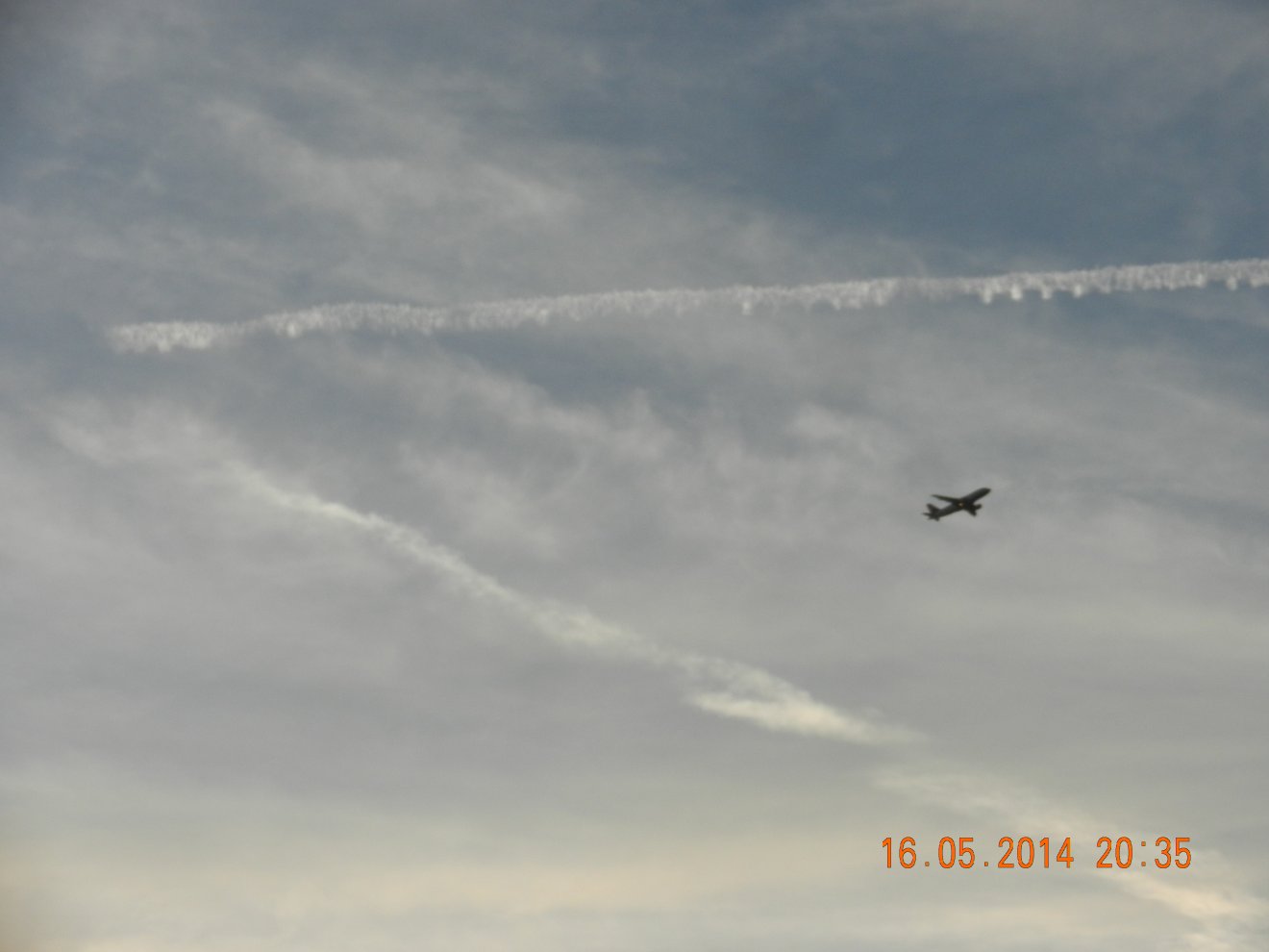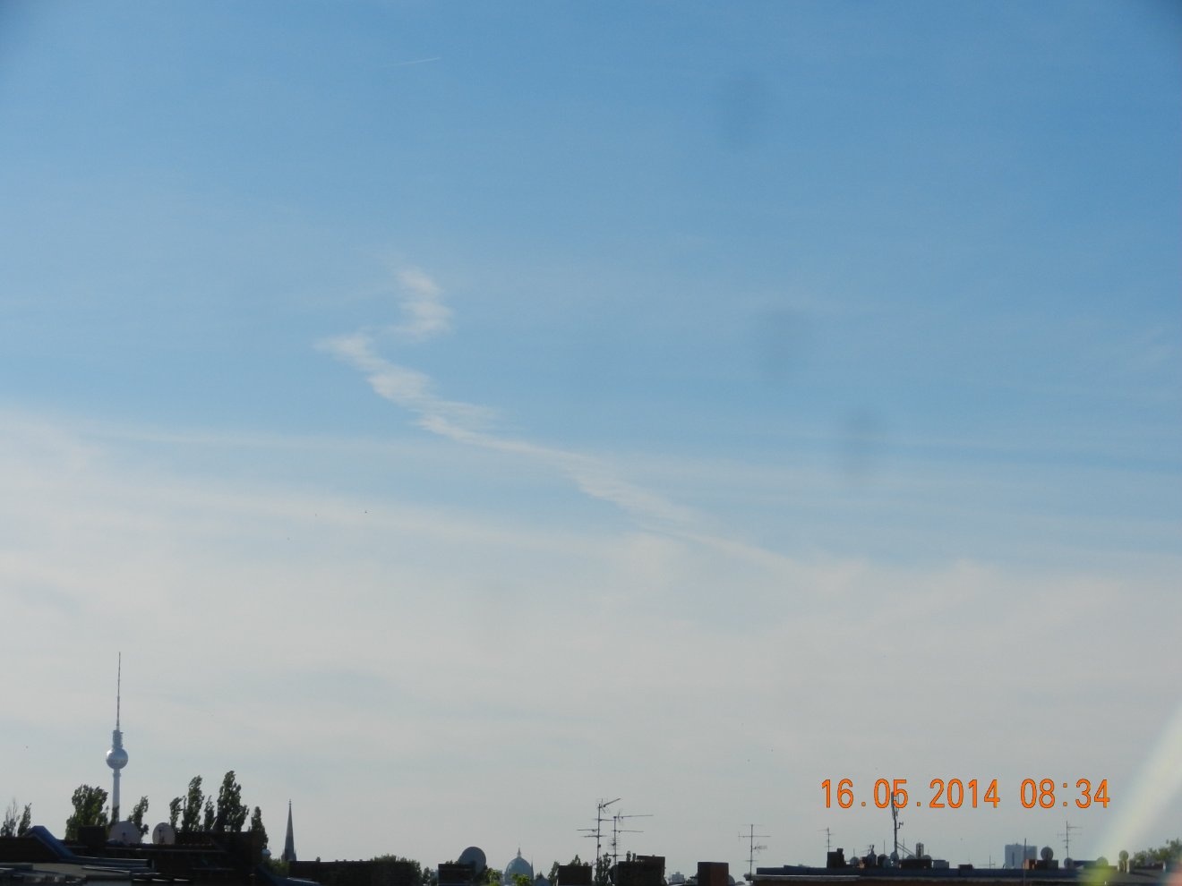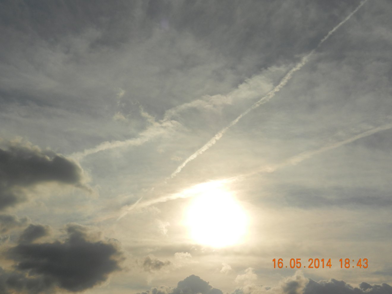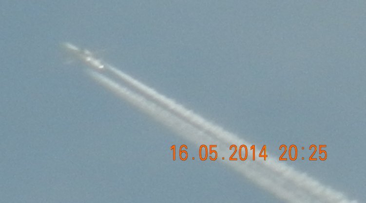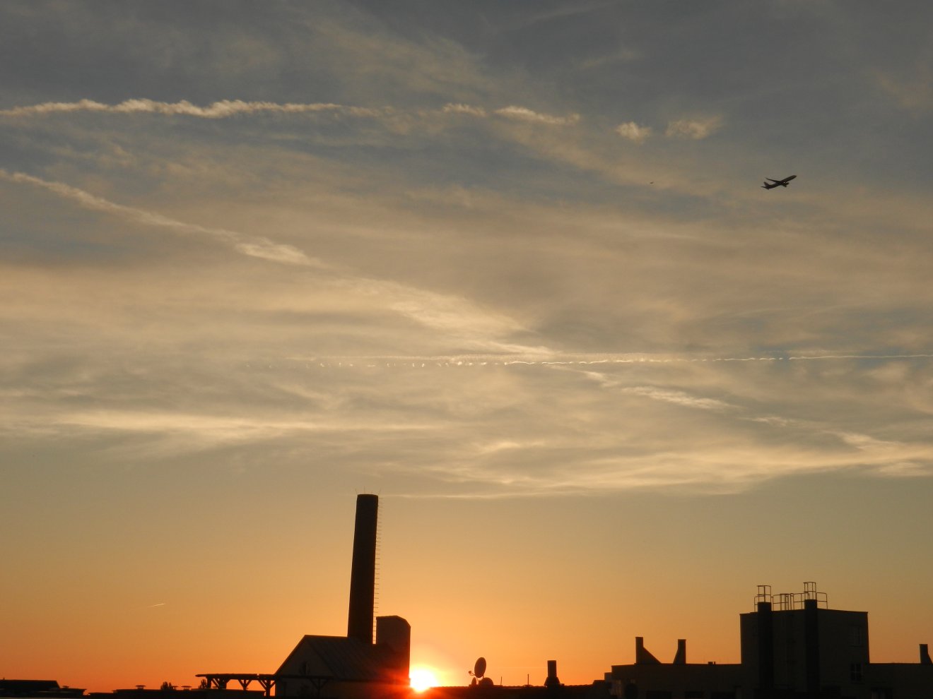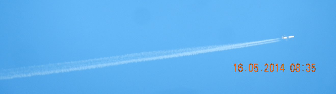 Tausendmal gesehen und immer wieder sehr befremdlich – wie die Flug-Apparate am Himmel entlangkriechen und ihre Spuren legen.