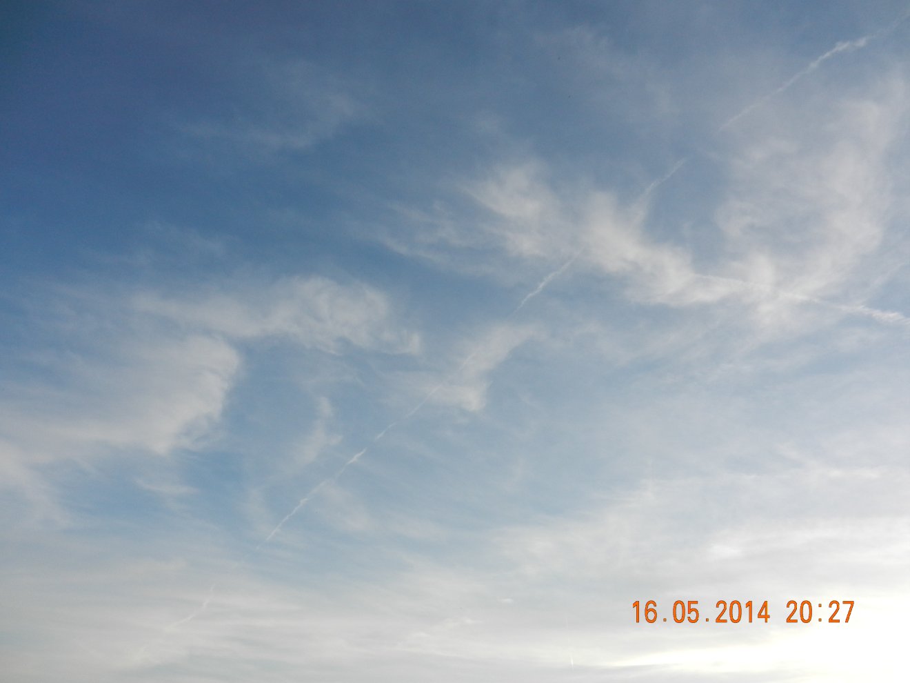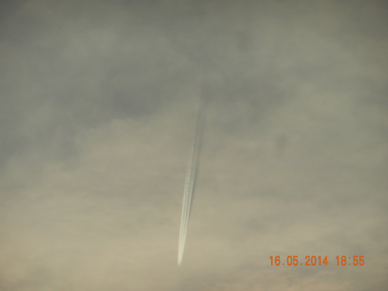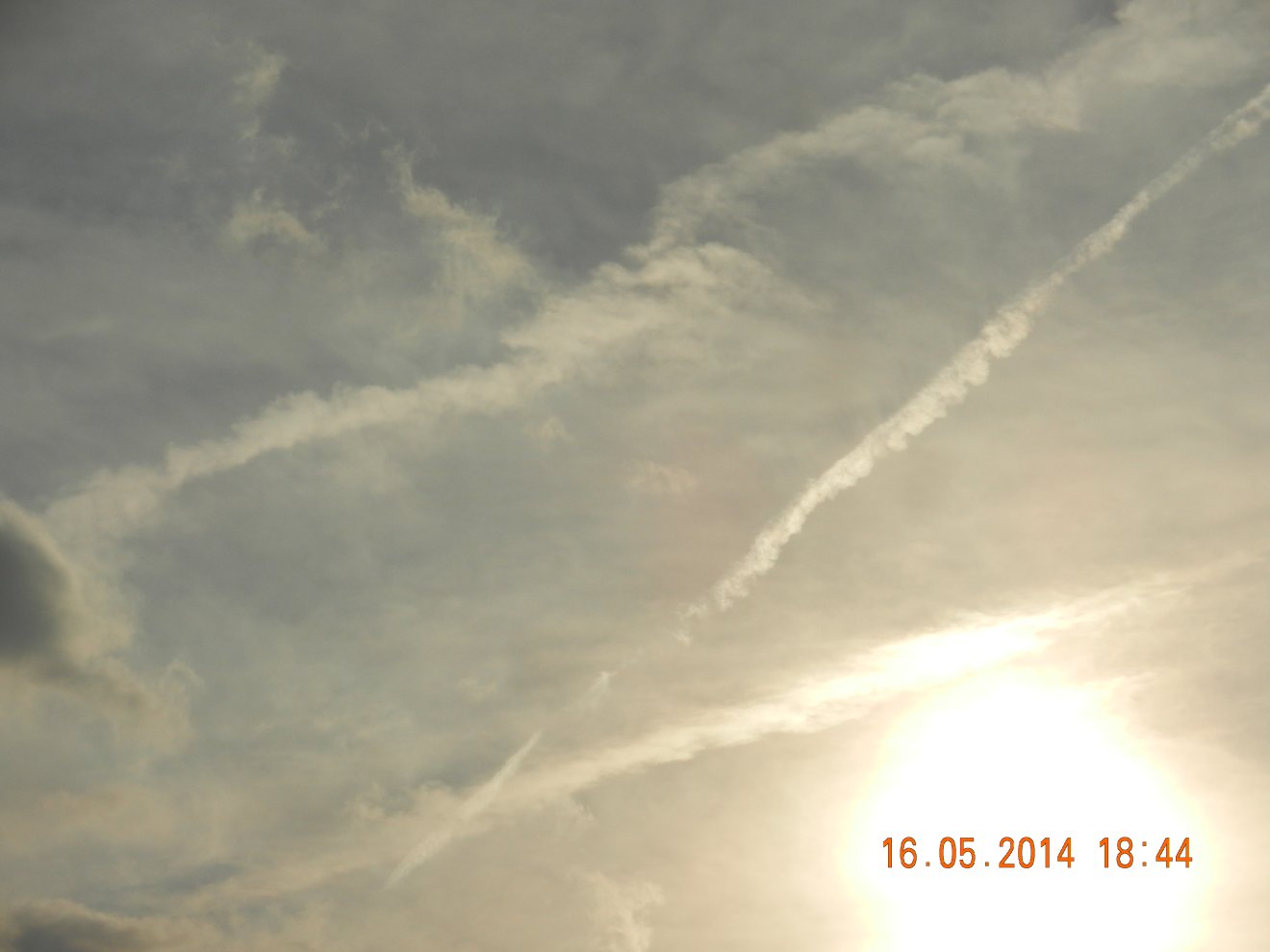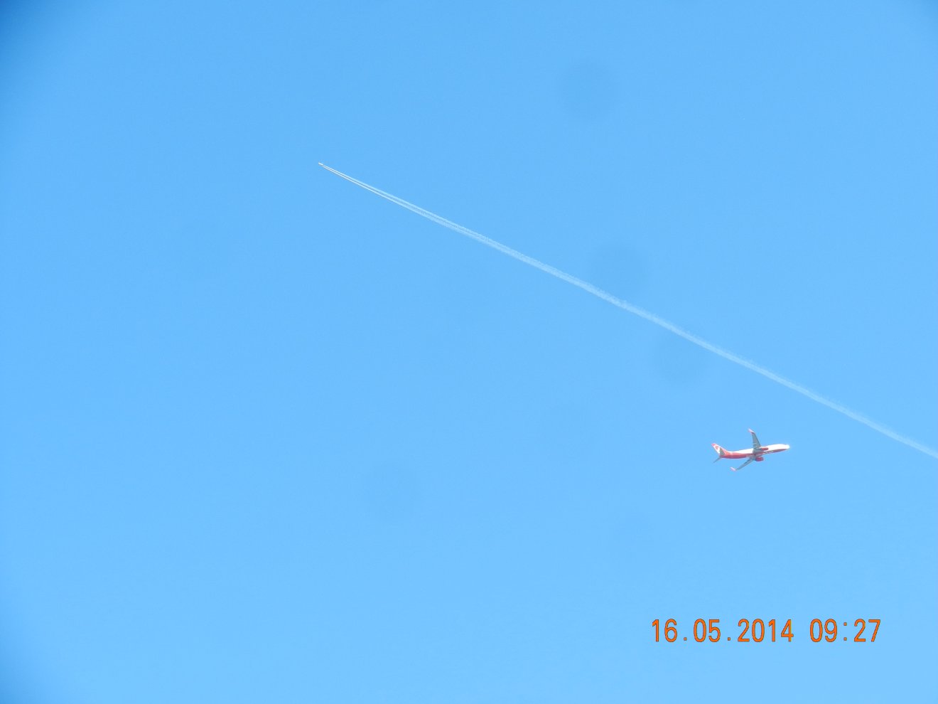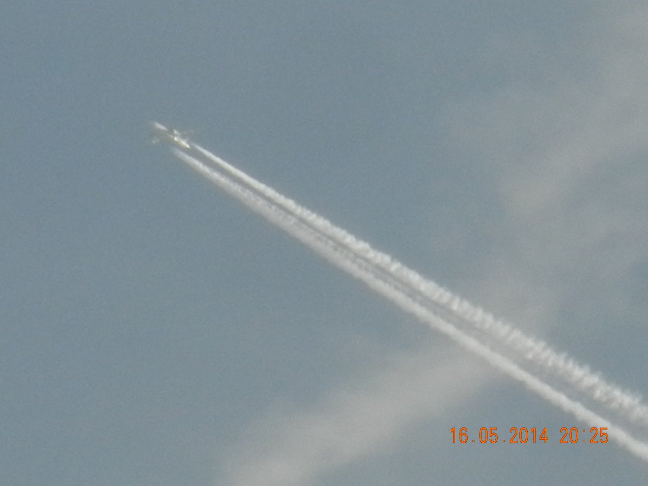 Tausendmal gesehen und immer wieder sehr befremdlich – wie die Flug-Apparate am Himmel entlangkriechen und ihre Spuren legen.