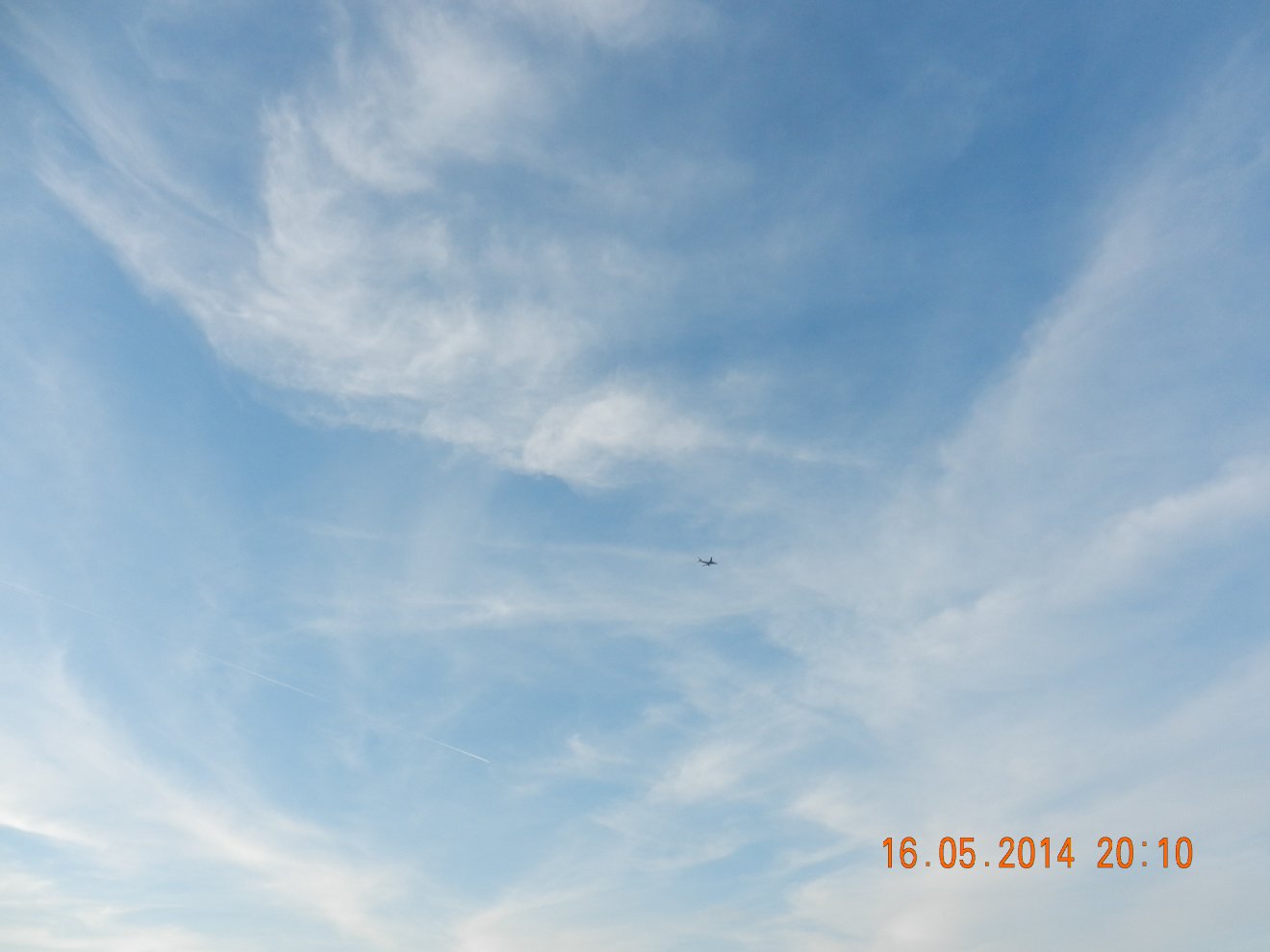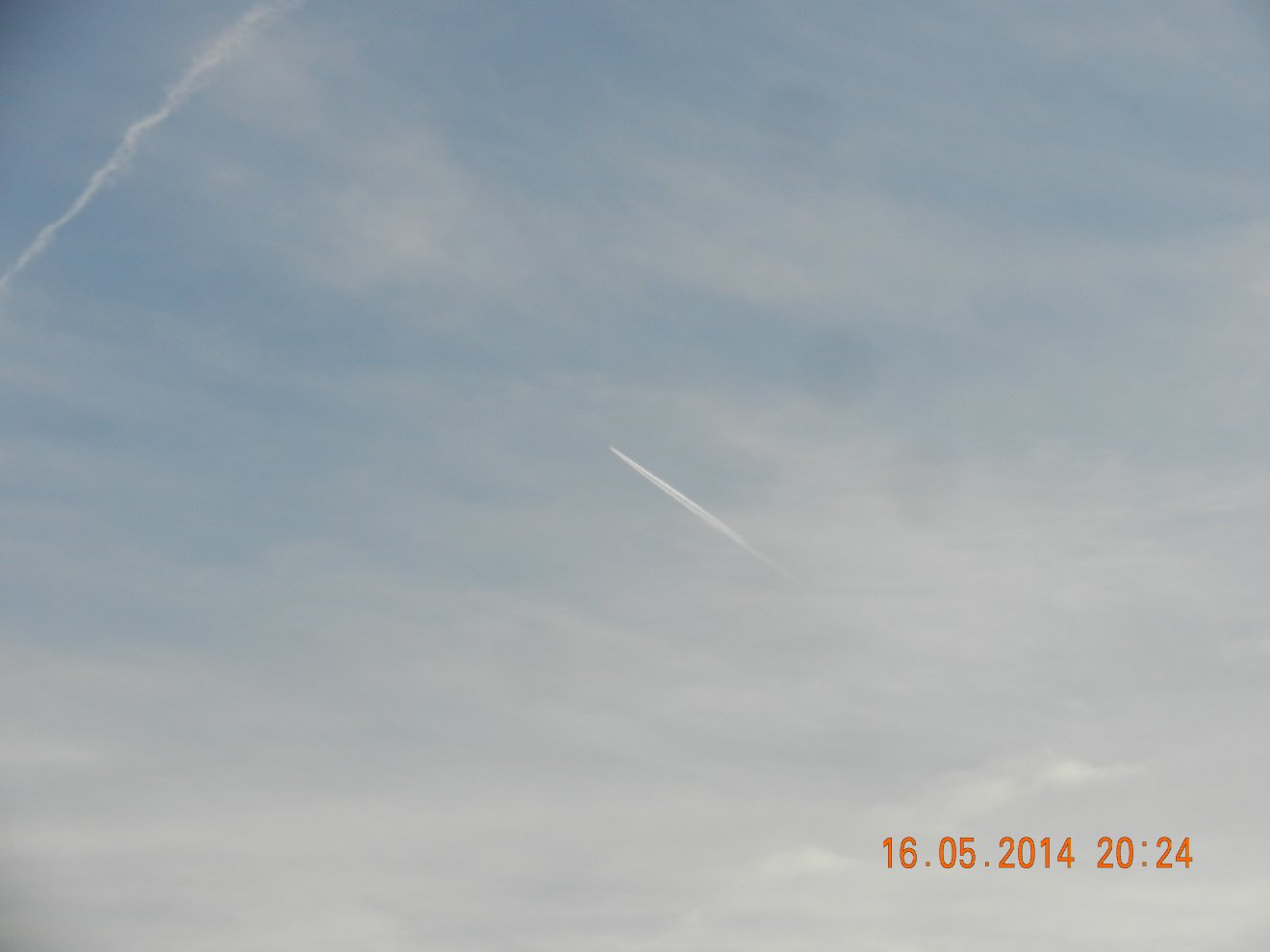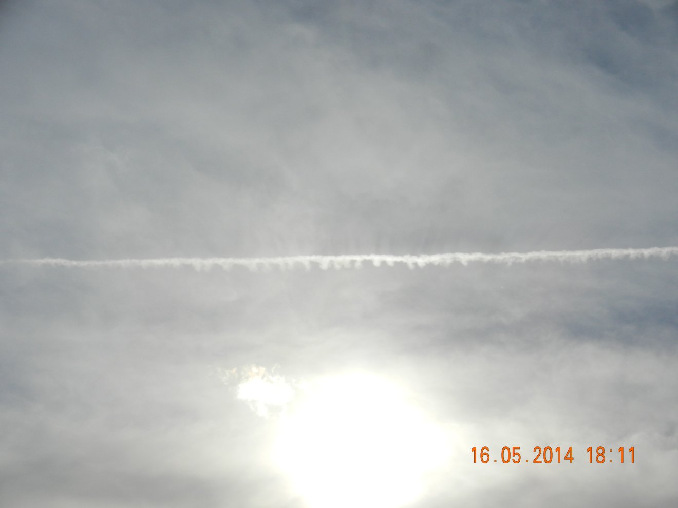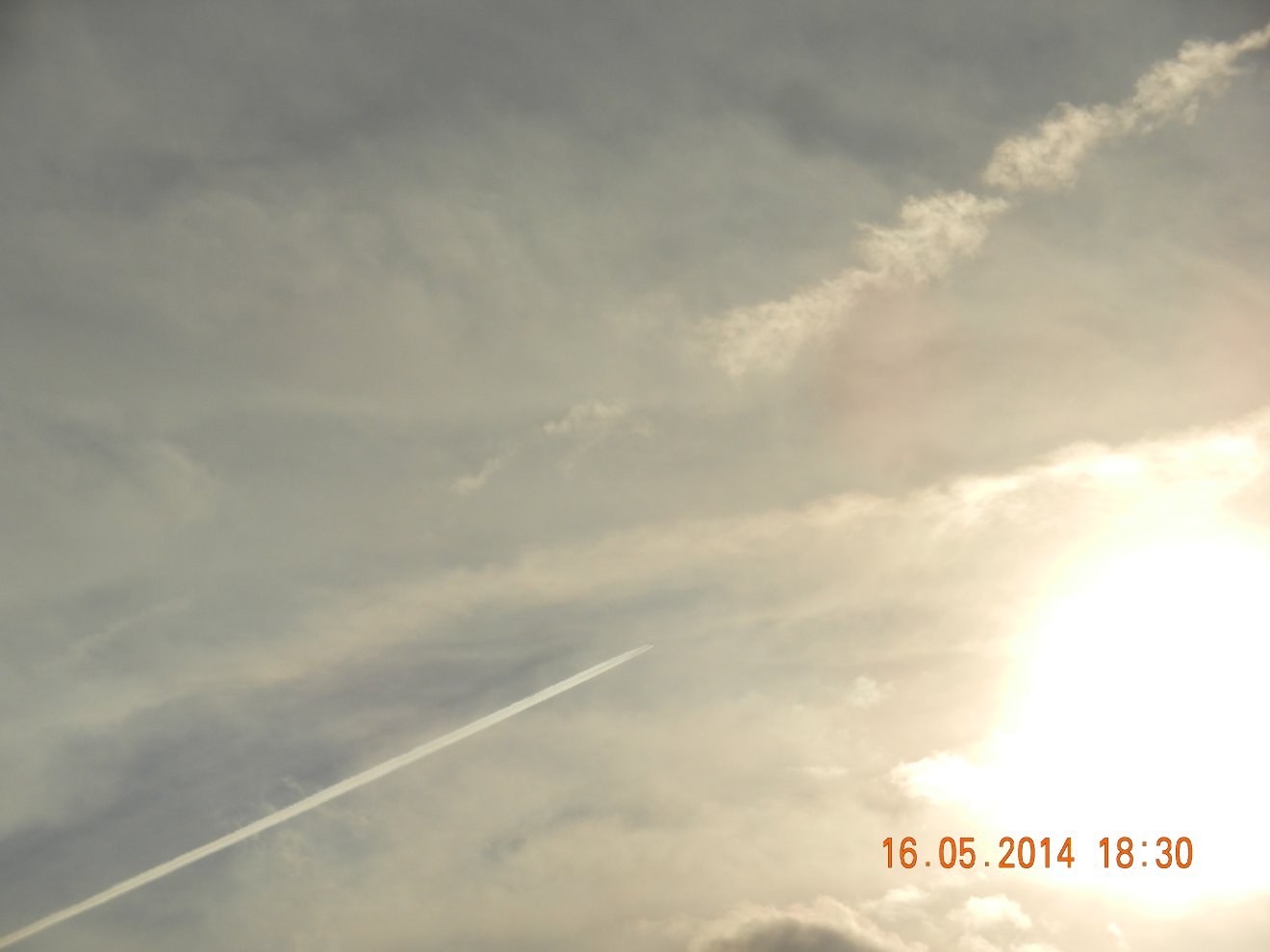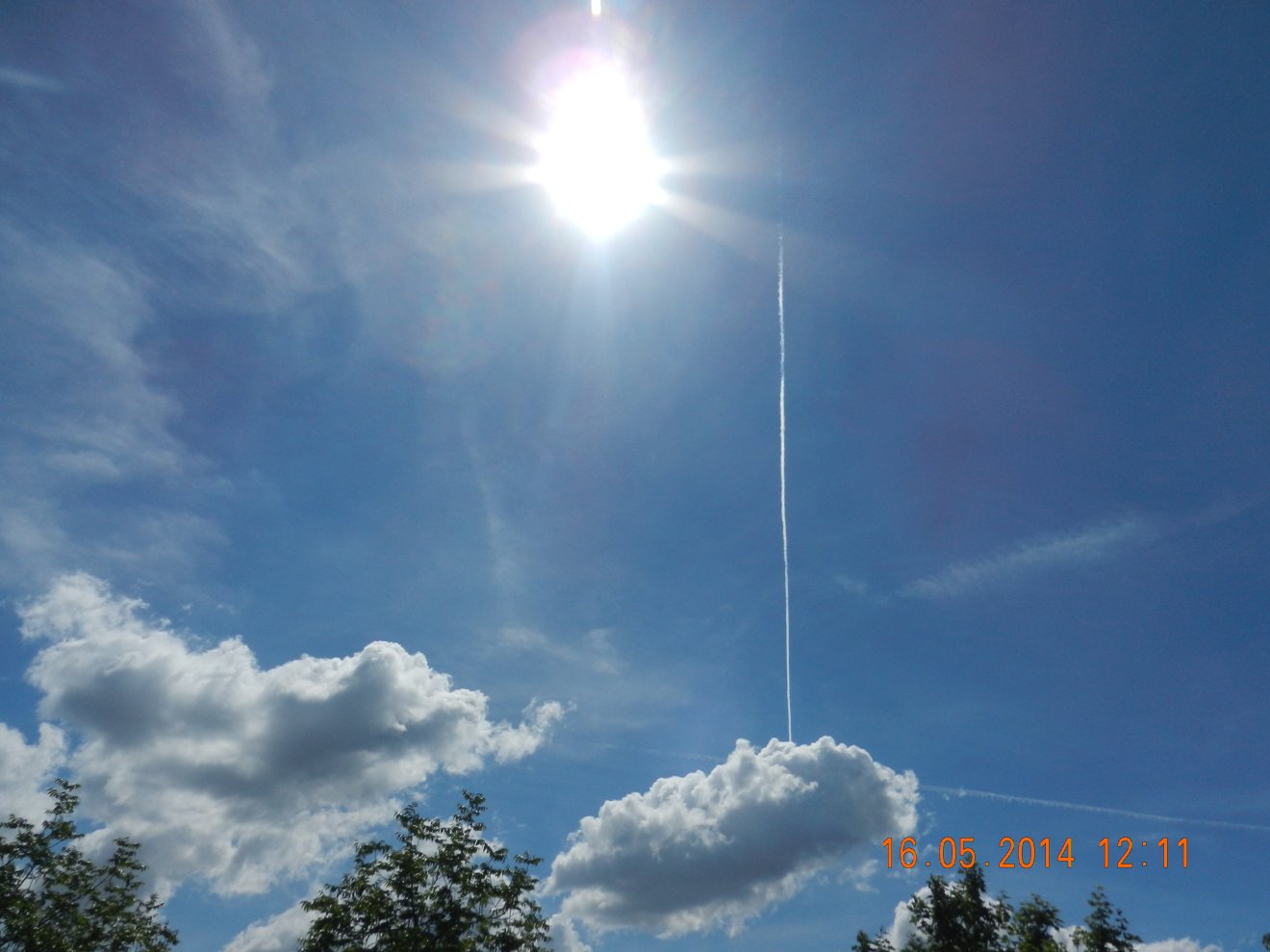 Tausendmal gesehen und immer wieder sehr befremdlich – wie die Flug-Apparate am Himmel entlangkriechen und ihre Spuren legen.