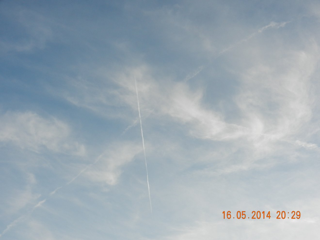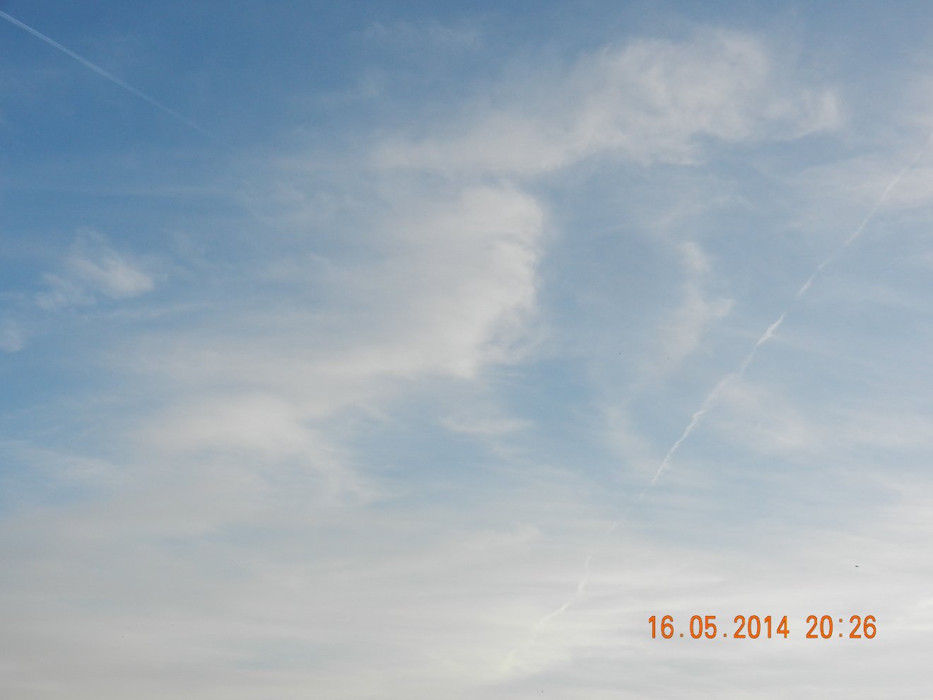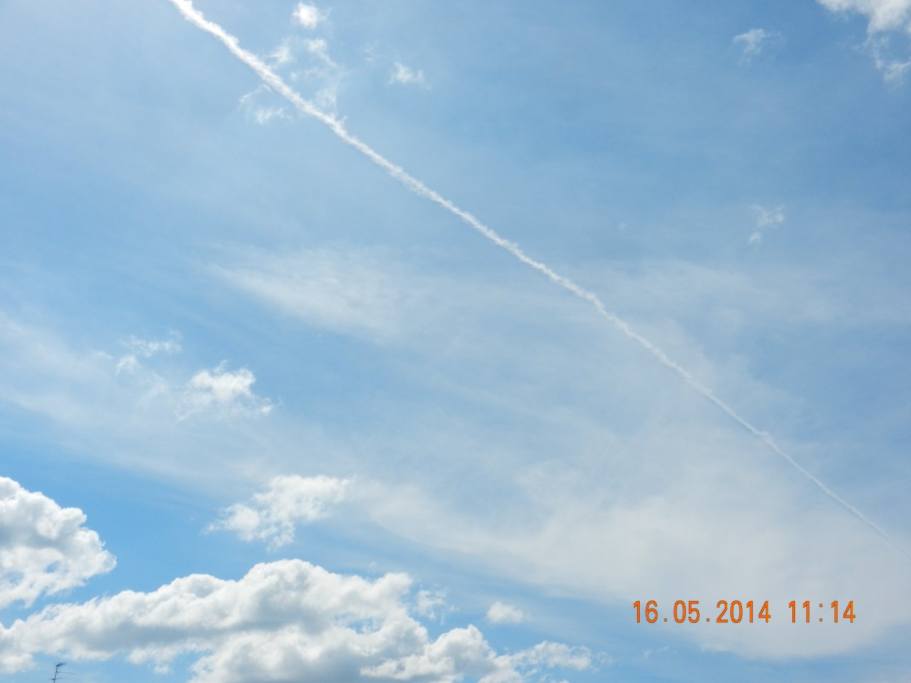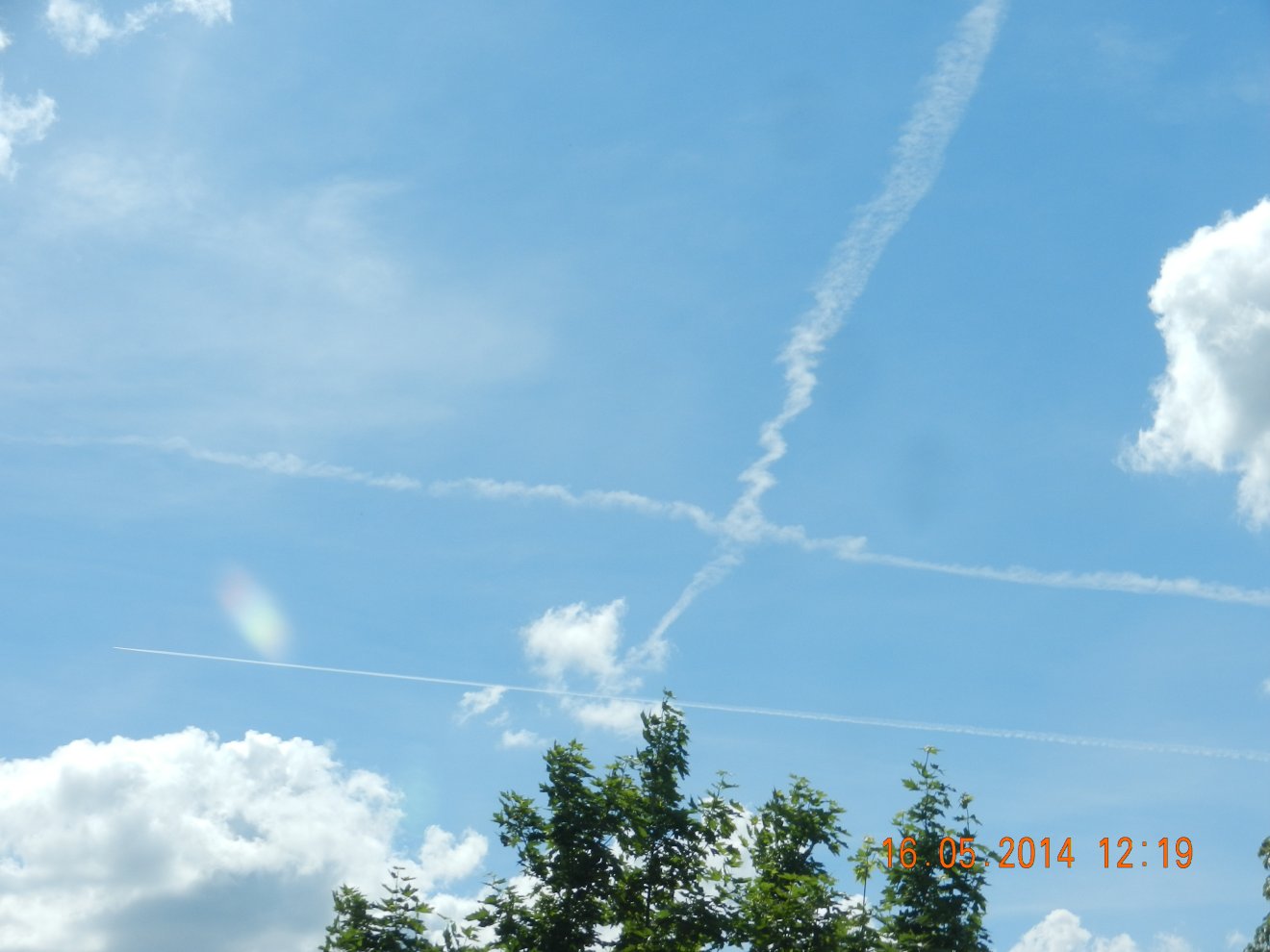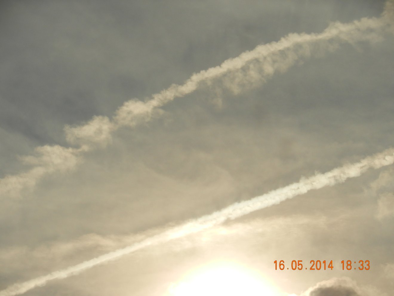 Tausendmal gesehen und immer wieder sehr befremdlich – wie die Flug-Apparate am Himmel entlangkriechen und ihre Spuren legen.