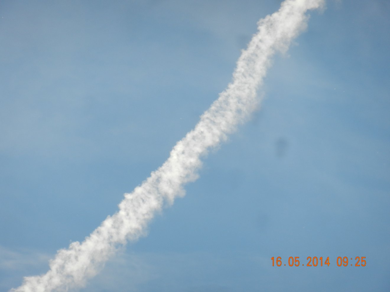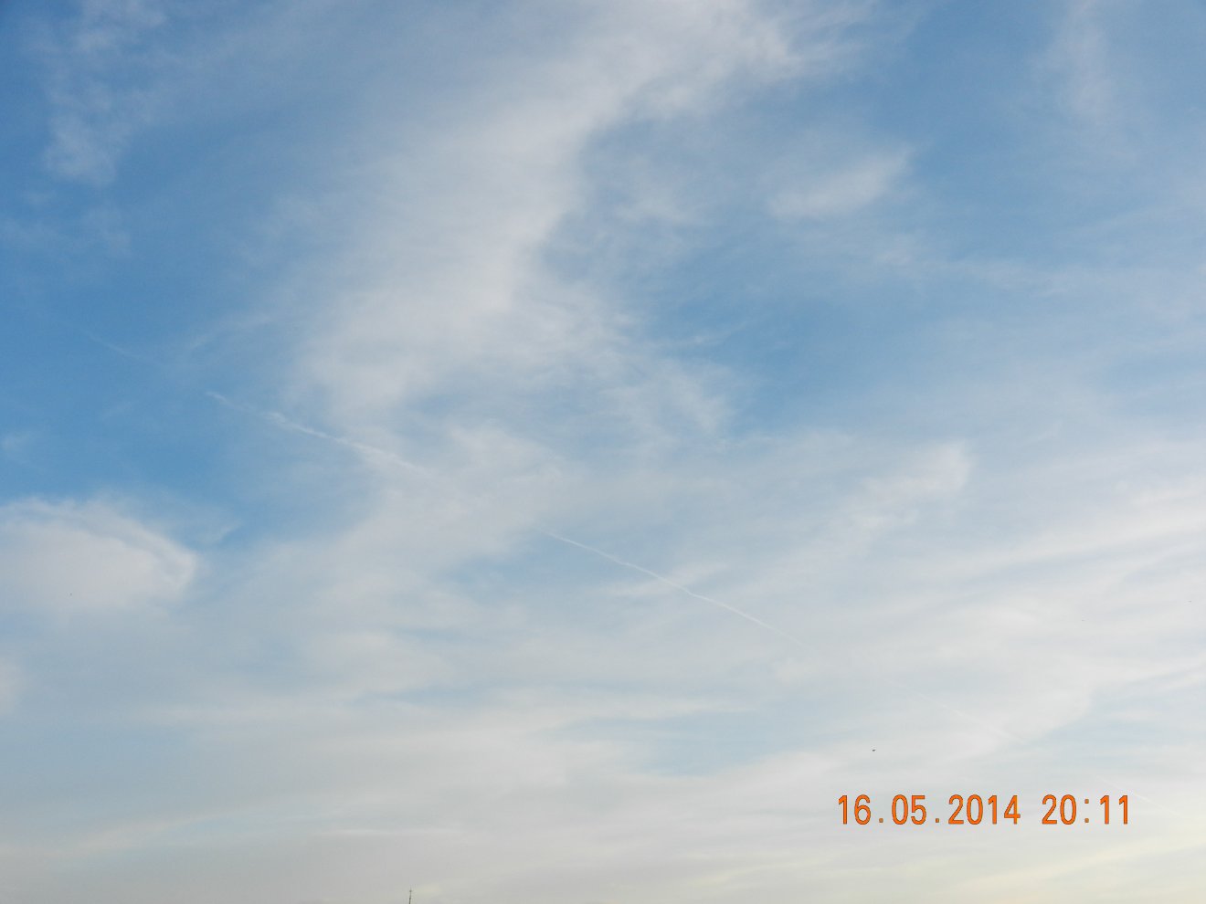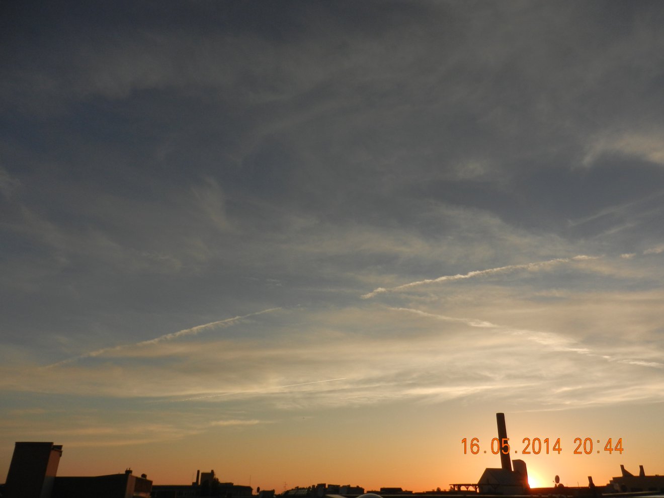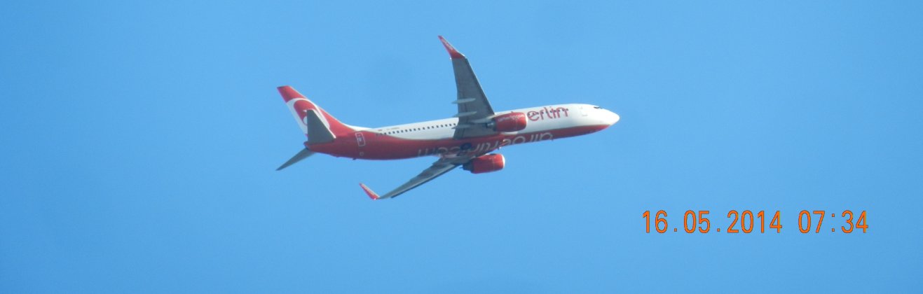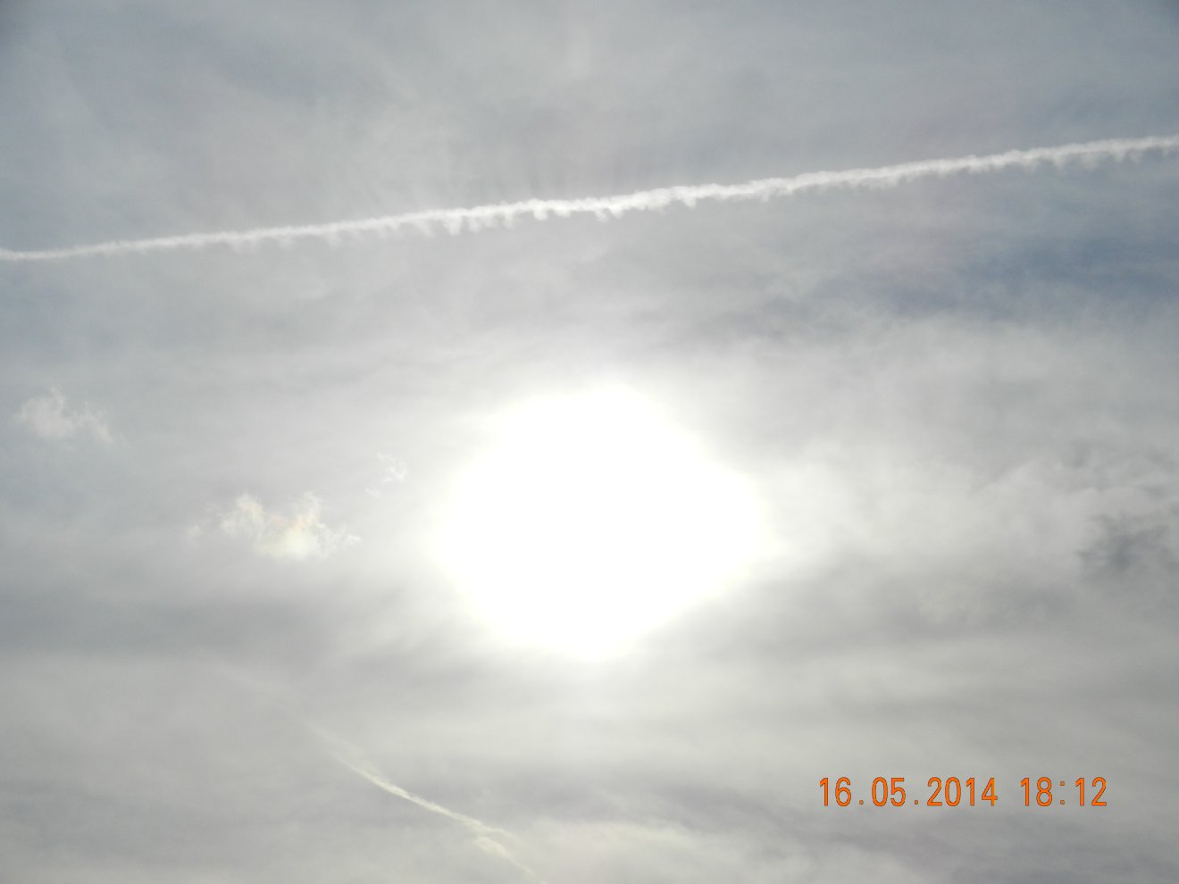Tausendmal gesehen und immer wieder sehr befremdlich – wie die Flug-Apparate am Himmel entlangkriechen und ihre Spuren legen.