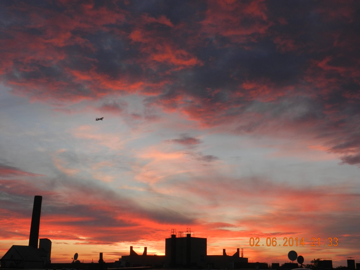 Dem HImmel heute abends ist es egal, der sieht aus als hätte er gleichzeitig alle Krankheiten die möglich sind.