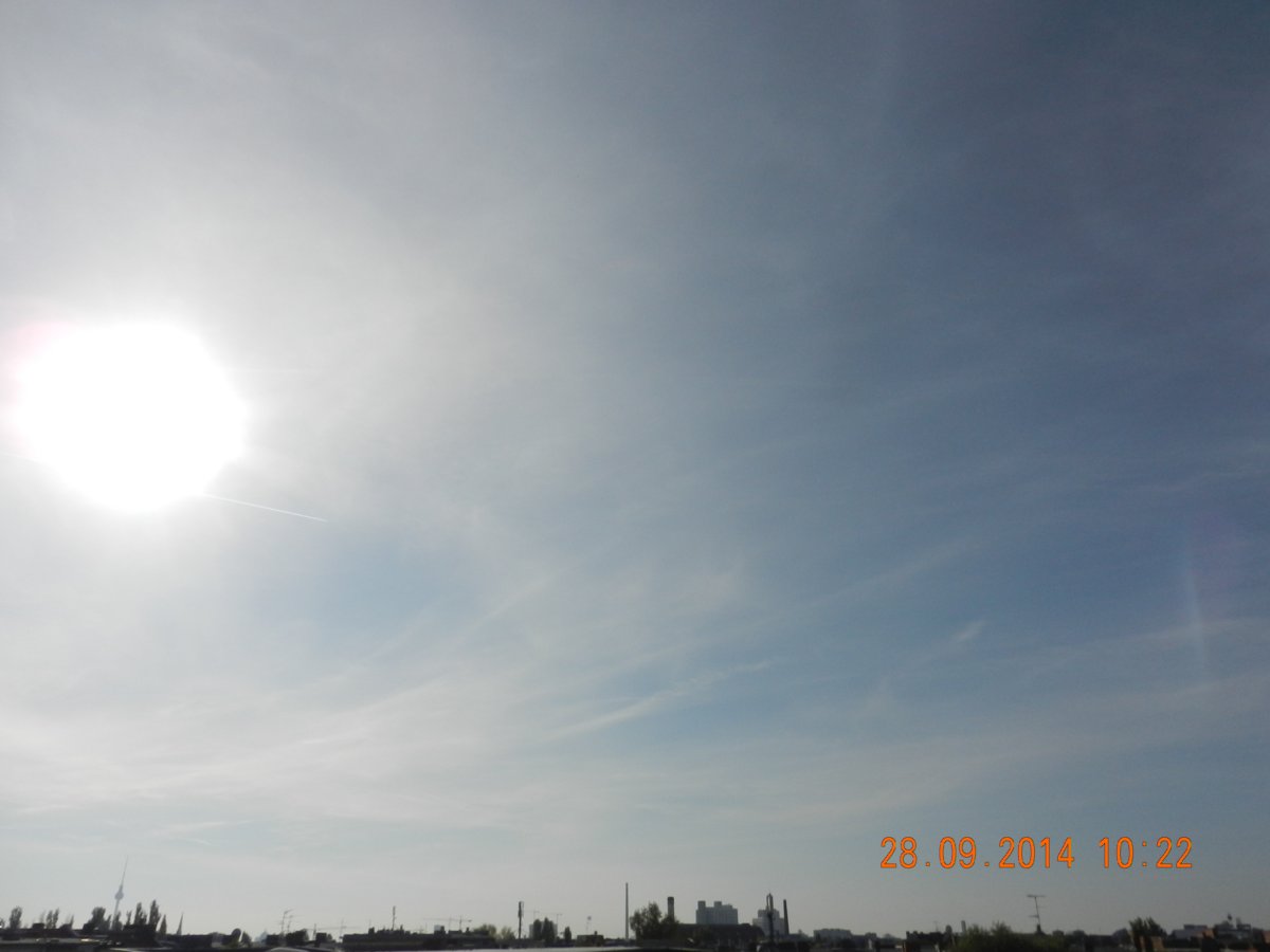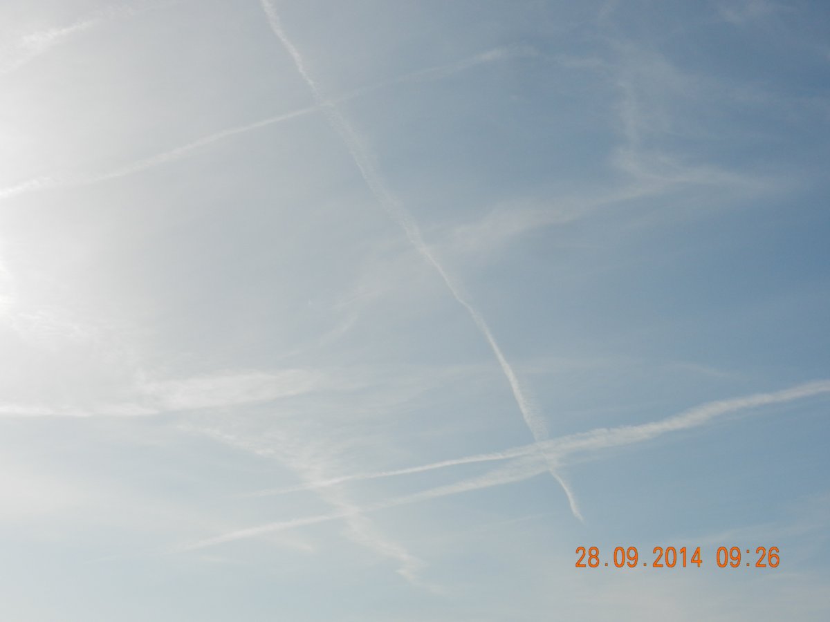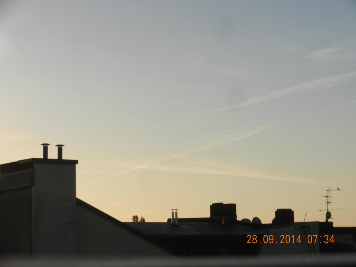ich dachte ich hab ne sehstörung; hier bilder des beginnenden sonntags, in der nacht wurde also wohl massiv über Frankreich und Benelux gesprüht. gestern sagte der wetterbericht für heute: wunderbares wetter mit nur wenigen harmlosen schleierwolken. ich bezweifle, dass dies schleierwolken sind und ebenso, dass dies harmlos ist …. …
