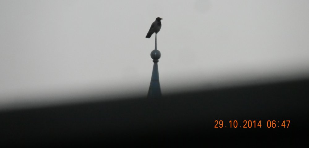 Der Vogel schaut nach dem Wetter und denkt sich, „da wird heute aber ein Sturm durch die Medien gehen, der Himmel sieht ganz anders aus als sonst, die Striche fehlen.“
