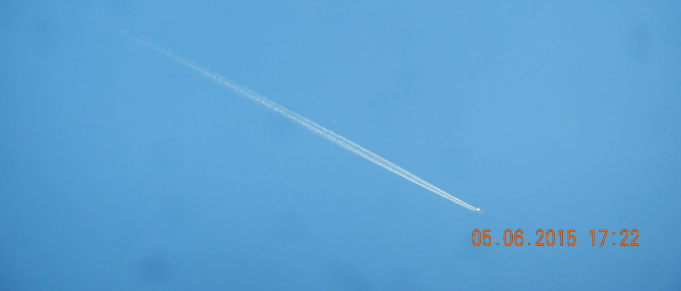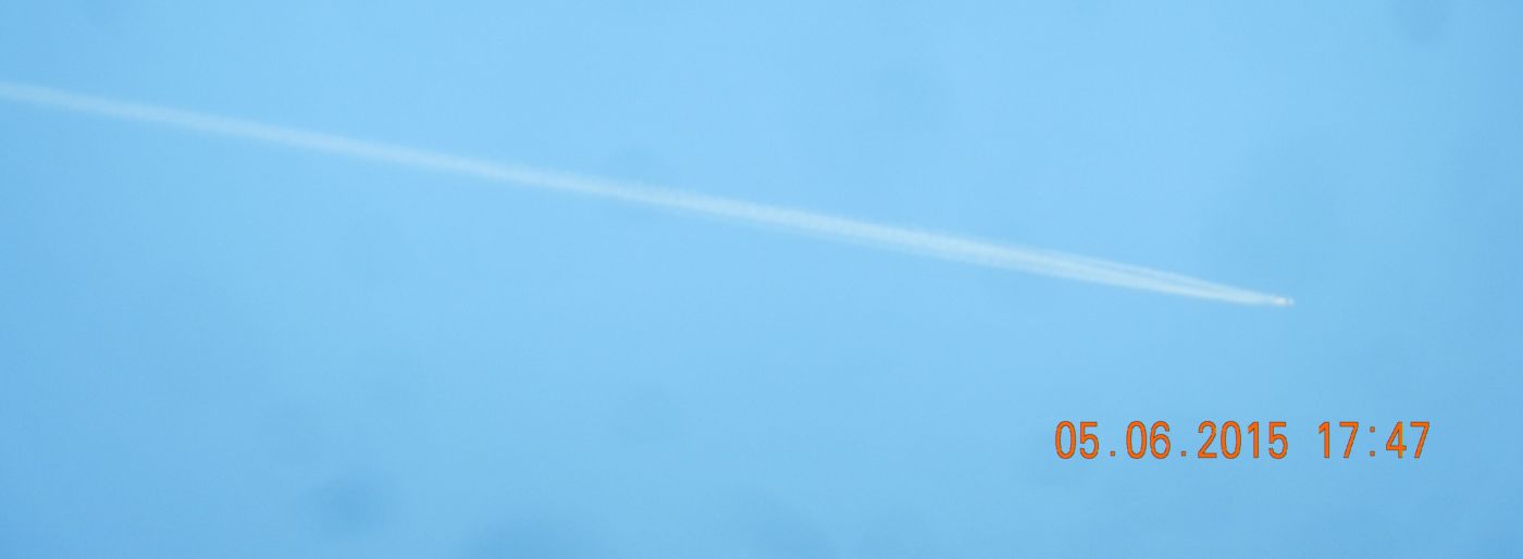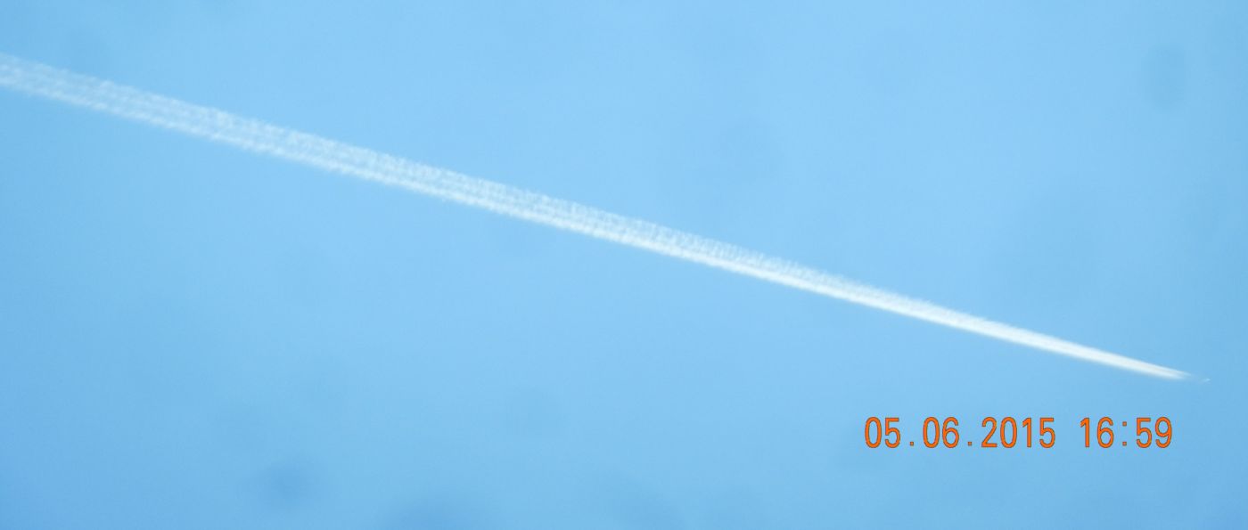 Zu den oben gezeigten Trails: Die Länge ist unterschiedlich abhängig vom Flugzeugtyp. Der erste ganz lange (12:05h) dürfte eine A380 gewesen sein, die haben dank ihren Beimischungen „den Längsten“! Dahinter folgt wohl die Boeing 747. Die Breite hängt vermutlich von Diffusoren ab. Aufgrund meiner intensiven Beobachtungen komme ich zu dem Schluss, dass die Luftfeuchtigkeit in den oberen Atmosphärenschichten (da wo sie sprühen, ca. in 10 km Höhe) auch eine entscheidende Rolle spielt. Dass die Trails in den letzten Tagen nicht so ausgeprägt sind, liegt an der trockenen Luft da oben. Diese Beobachtugen haben aber nichts mit den Trails zu tun die zusätzlich ausgebracht werden und langsam, über Stunden sich am Himmel verbreitern und dann verlaufen (gestern hier zahlreich zu sehen, oben aber nicht abgebildet). Hier werden extra Aerosole (Aluminium, Barium Strontium, von wegen Schwefel – nur machmal, sichtbar an gelblich bräunlicher Färbung in der Abendsonne) ausgebracht, die wahrscheinlich mit den durch Additive verursachten o.g. Contrails reagieren ( Zwei oder mehr Komponenten Phänomen). Zusammen bilden sie dann diese milchig-glasig blendende hohe Wolkenschicht, die dann oft alles dicht macht. So meine Beobachtungen, wird das hier auch so gesehen? Und Gruß.