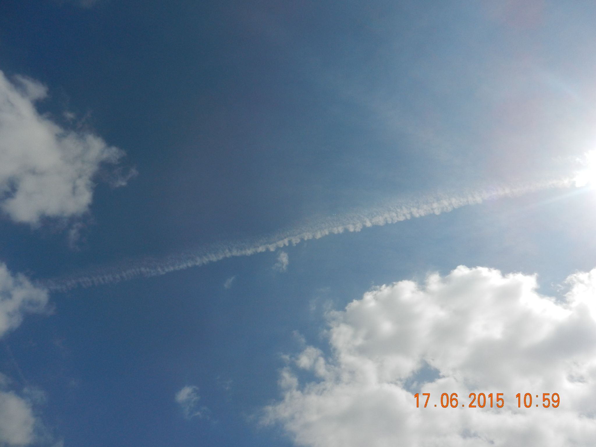 „Durch sie werden in dichtbeflogenen Gebieten hohe Wolkenschichten erzeugt, die die Sonneneinstrahlung behindern. Dadurch können klimatische Veränderungen entstehen, die aber eher eine Abkühlung bewirken. So gesehen, darf sich derjenige, der sich vor der Erderwärmung fürchtet, am Anblick der Kondensstreifen erfreuen.“