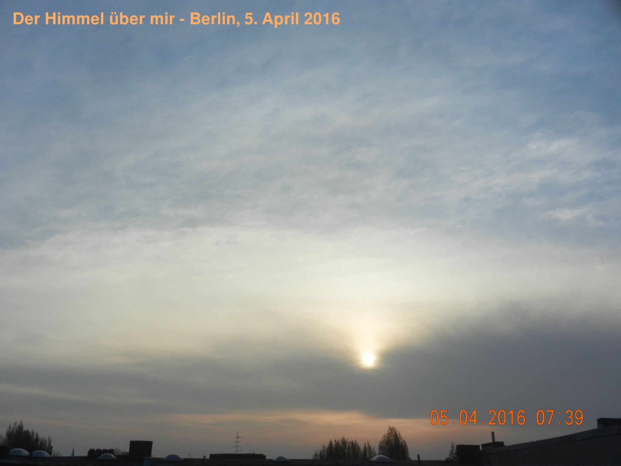 1. Hatte das zweifelhafte Vergnügen am Ostersonntag in den Alpen zu verweilen. Abends zuvor und während der Nacht strahlender blauer bzw. klarer Himmel. Beim Blick aus dem Fenster gegen 7:30h die ersten CTs, bis Mittag hatten sie den ganzen Himmel über den Alpen soweit man sehen konnte komplett zugezogen. Tags darauf, Ostermontag, nach nächtlichen „Regen“ das gleiche Schauspiel im Bayrischen Wald. Soweit die Lage im Süden. Und Gruß!