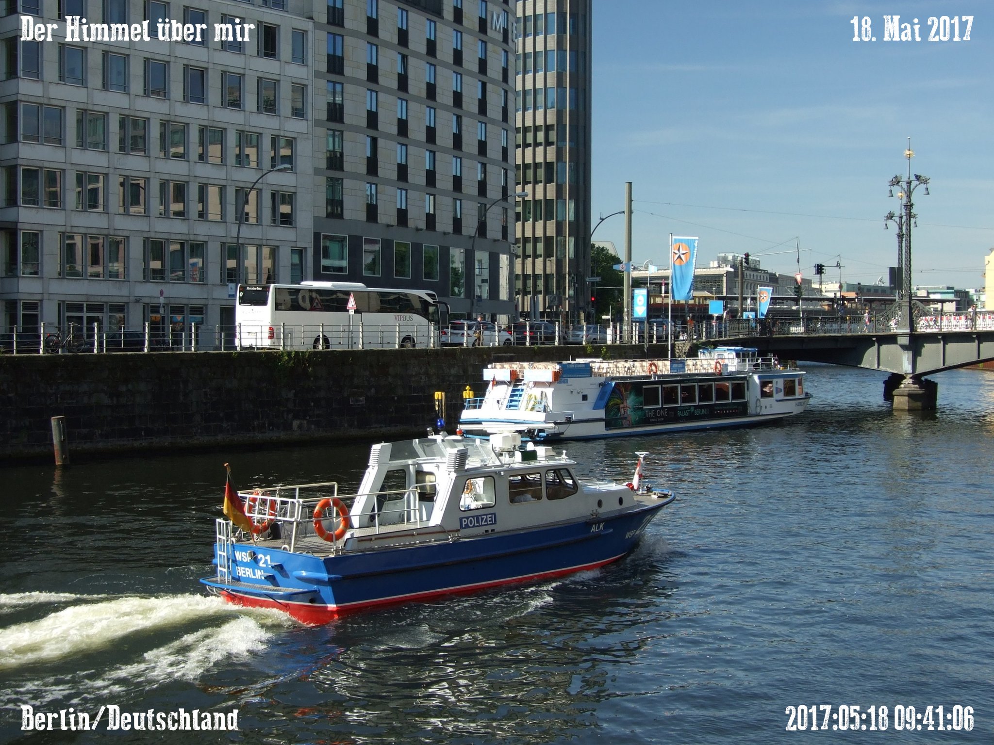 Weitergehen, über die Brücke, dann links! Da kommt ja schon wieder die POLIZEI, bestimmt sorgen sie für Recht und Ordnung.