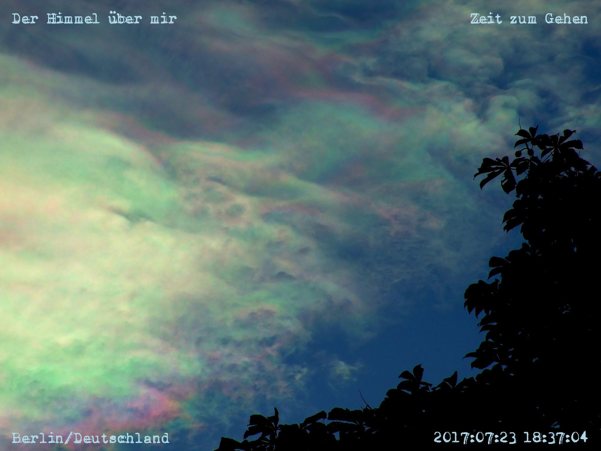 Wer Wind sät, will Sturm ernten und wer Krieg vorbereitet, will Krieg haben und wird Krieg bekommen. Über der deutschen Hauptstadt hängen Wolkenersatzobjekte, die schwarzen Vögel fliegen. Ist der Himmel wirklich weit weg? Das Einkaufswagen-Thema nimmt kein Ende … Am Abend zieht eine gigantische Gewitterfront heran.