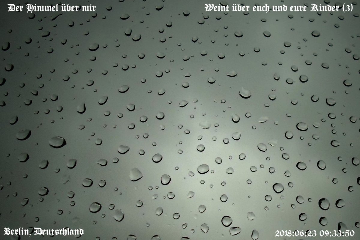 Published 23. Juni 2018 at 1536 × 1023 in Weint über euch und eure Kinder (3) ‹ Return to post Was sagen Sie dazu? Antwort abbrechen Δ Diese Seite verwendet Akismet, um Spam zu reduzieren. Erfahre, wie deine Kommentardaten verarbeitet werden..