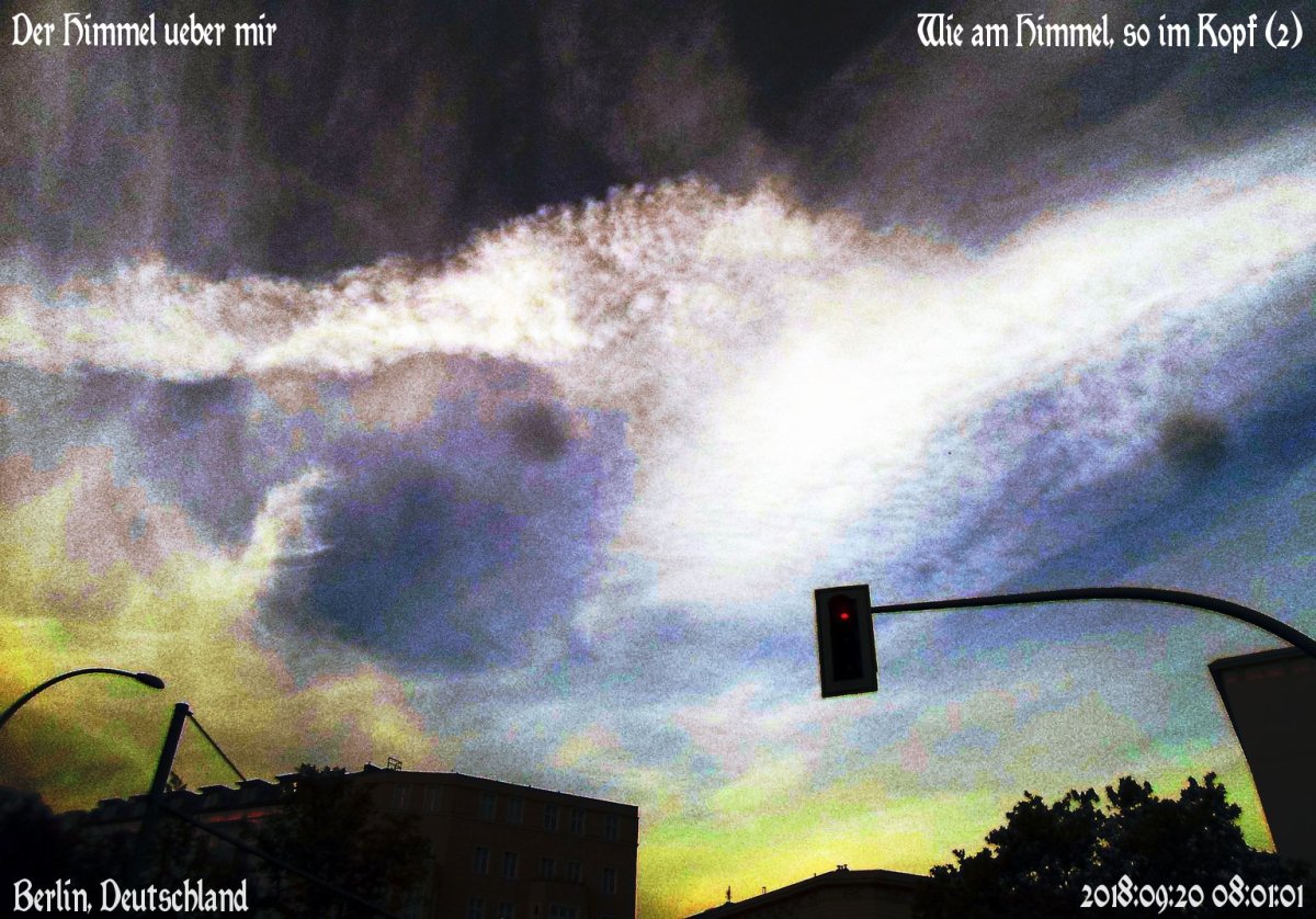 Published 20. September 2018 at 1536 × 1073 in Wie am Himmel, so im Kopf (2) ‹ Return to post Was sagen Sie dazu? Antwort abbrechen Δ Diese Seite verwendet Akismet, um Spam zu reduzieren. Erfahre, wie deine Kommentardaten verarbeitet werden..
