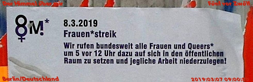 Published 8. März 2019 at 981 × 321 in Fünf vor Zwölf ‹ Return to post Was sagen Sie dazu? Antwort abbrechen Δ Diese Seite verwendet Akismet, um Spam zu reduzieren. Erfahre, wie deine Kommentardaten verarbeitet werden..
