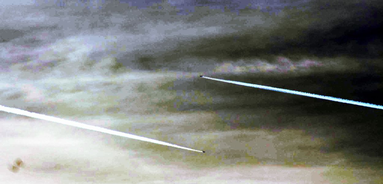 Moderne, blickdichte Sprühwolken am Himmel über Berlin: was haben wir zu verbergen?